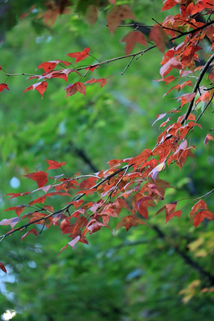 年中楽しめますが、秋は緑から黄色、黄色から赤色へと次第に紅葉していく様子を楽しめます。